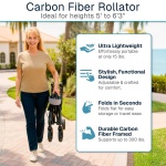 Elevate your mobility with the Carbon Glide Rollator, a sleek and lightweight solution designed for seniors seeking independence and comfort. Crafted from durable carbon fiber, this rollator weighs a mere 15 lbs yet supports up to 300 lbs, making it effortlessly portable. Its ergonomic reversed handles enhance posture and reduce wrist strain, while the semi-all-terrain wheels ensure smooth navigation across various surfaces. Personalize your comfort with height-adjustable handles and backrest, and enjoy the convenience of an extra-wide padded seat for restful breaks. The roomy storage bag keeps essentials within reach, and with its easy-lock hand brakes, safety is always assured. Arriving fully assembled, the Carbon Glide Rollator is ready to support your active lifestyle.